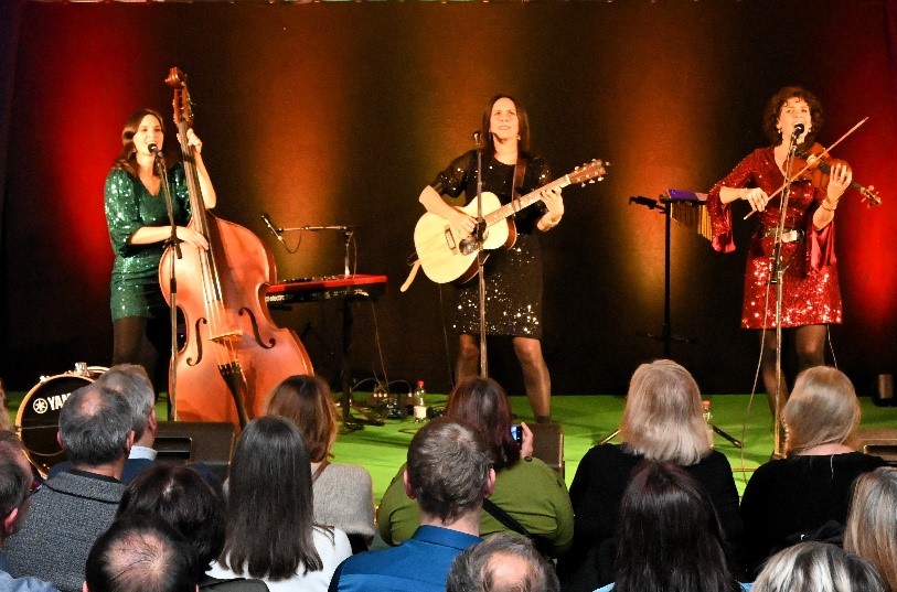 So wurden ihre eigenen Songs, aber auch die bekannten Traditionals und Coversongs zu einzigartigen Klängen und Interpretationen, die tief berühren und mitreißen. Herzerwärmend glänzte ihre vokale Dreistimmigkeit voller Harmonie und präzisem Zusammensingen, wie es nur Geschwister vermögen.