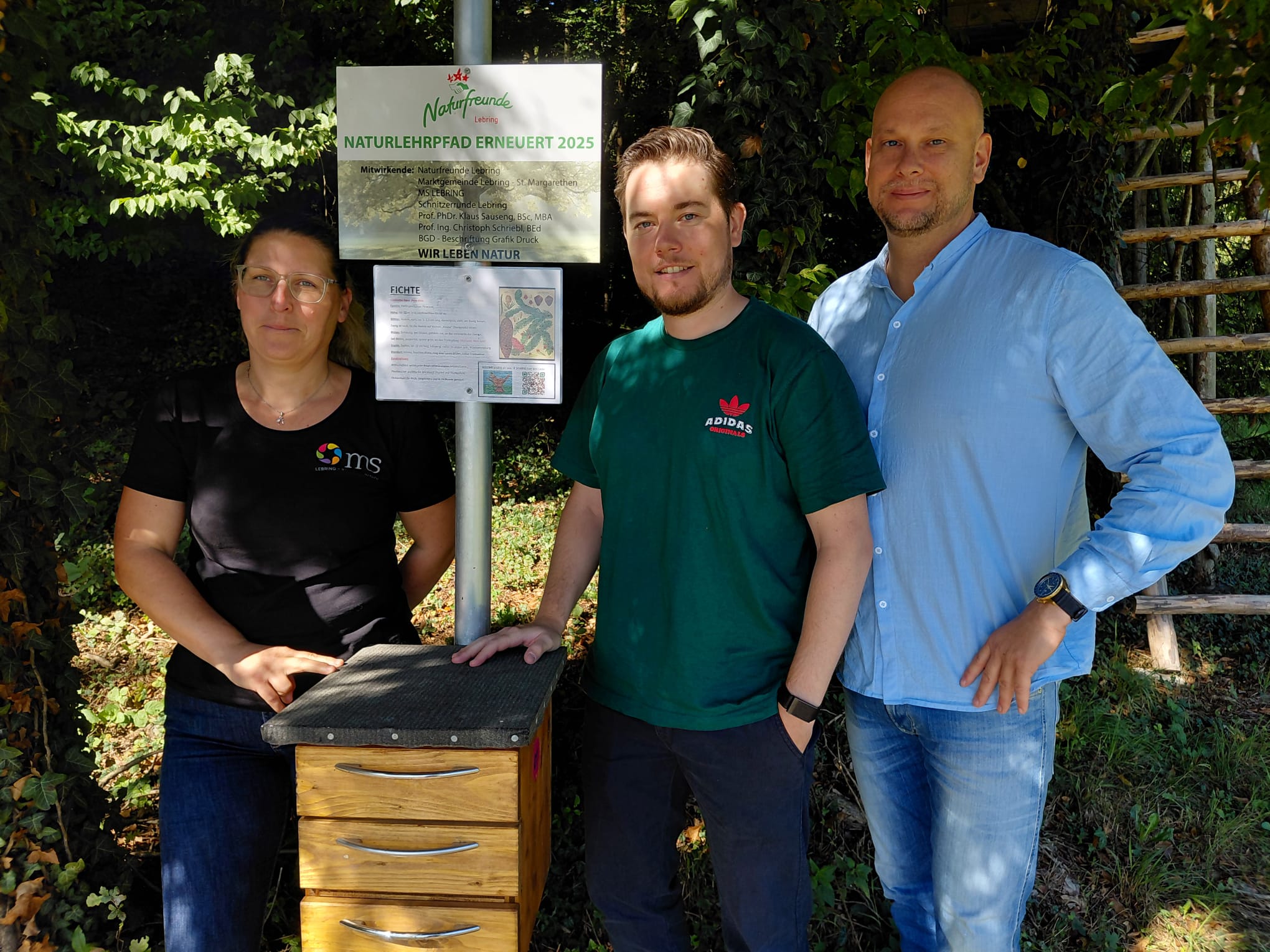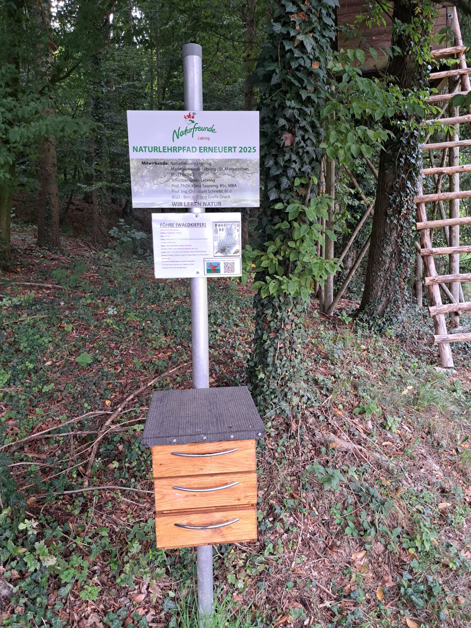 Neben der technischen Aufwertung stand auch die Nachhaltigkeit im Vordergrund: Wetterbeständige Schilder, stabile Bodenverankerungen und drei neue Schaukästen sichern den Lehrpfad langfristig und machen ihn robust für kommende Generationen.