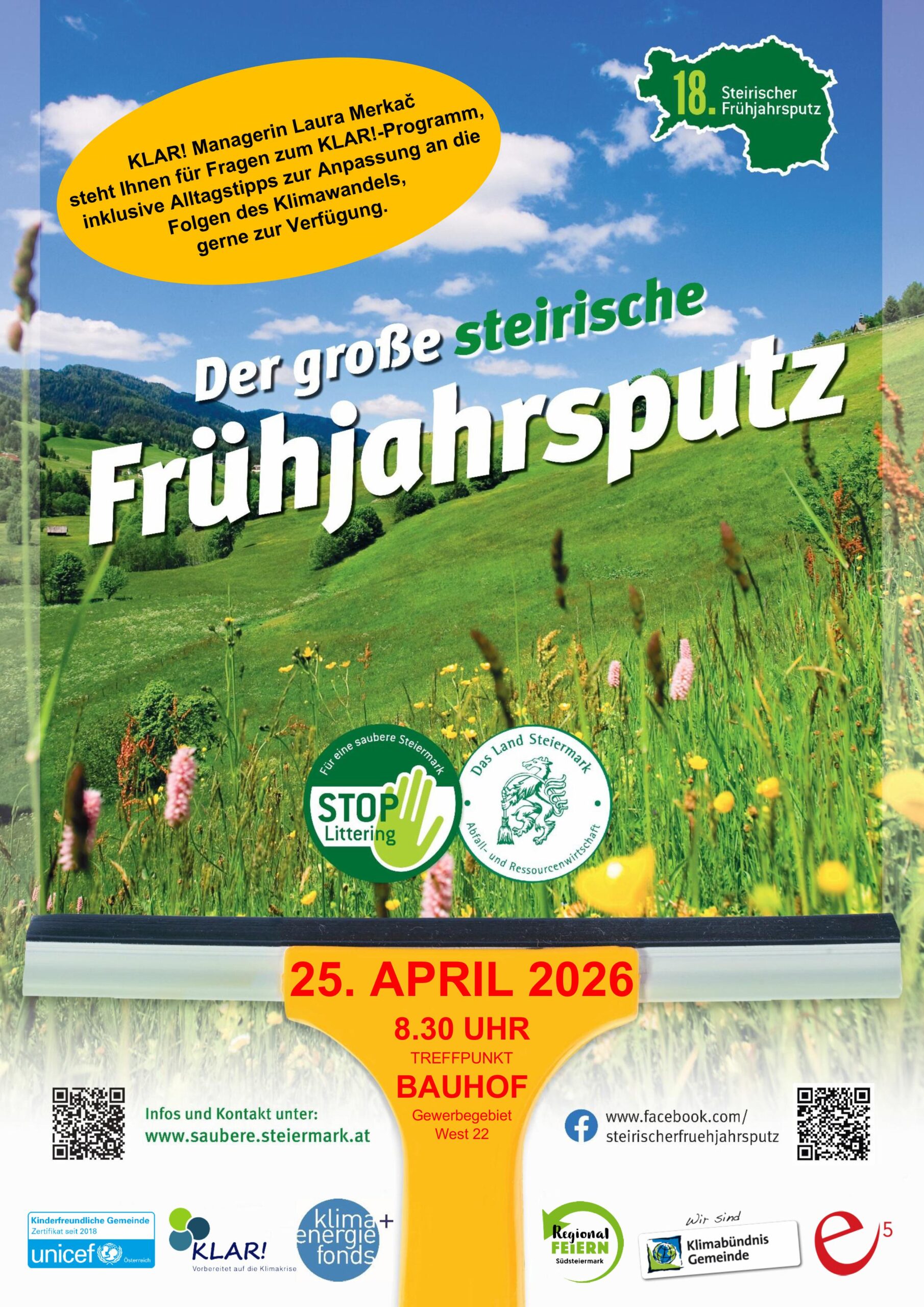 Die gesamte Bevölkerung ist eingeladen, ein Zeichen gegen das unbedachte Wegwerfen von Müll zu setzen und Grünanlagen, Wiesen, Wälder, Bachläufe… zu reinigen.