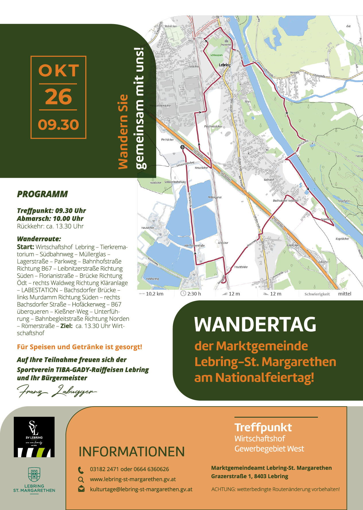 Auf Ihre Teilnahme freuen sich der Sportverein TIBA-GADY-Raiffeisen Lebring und Ihr Bürgermeister ÖkR Franz Labugger