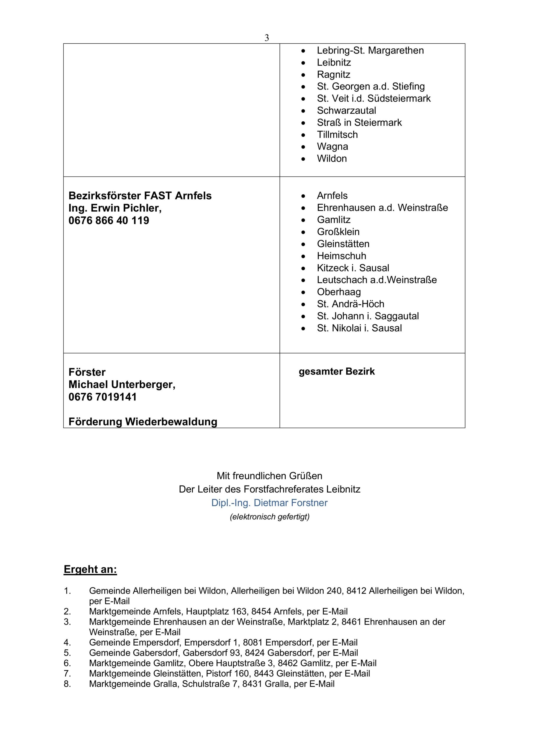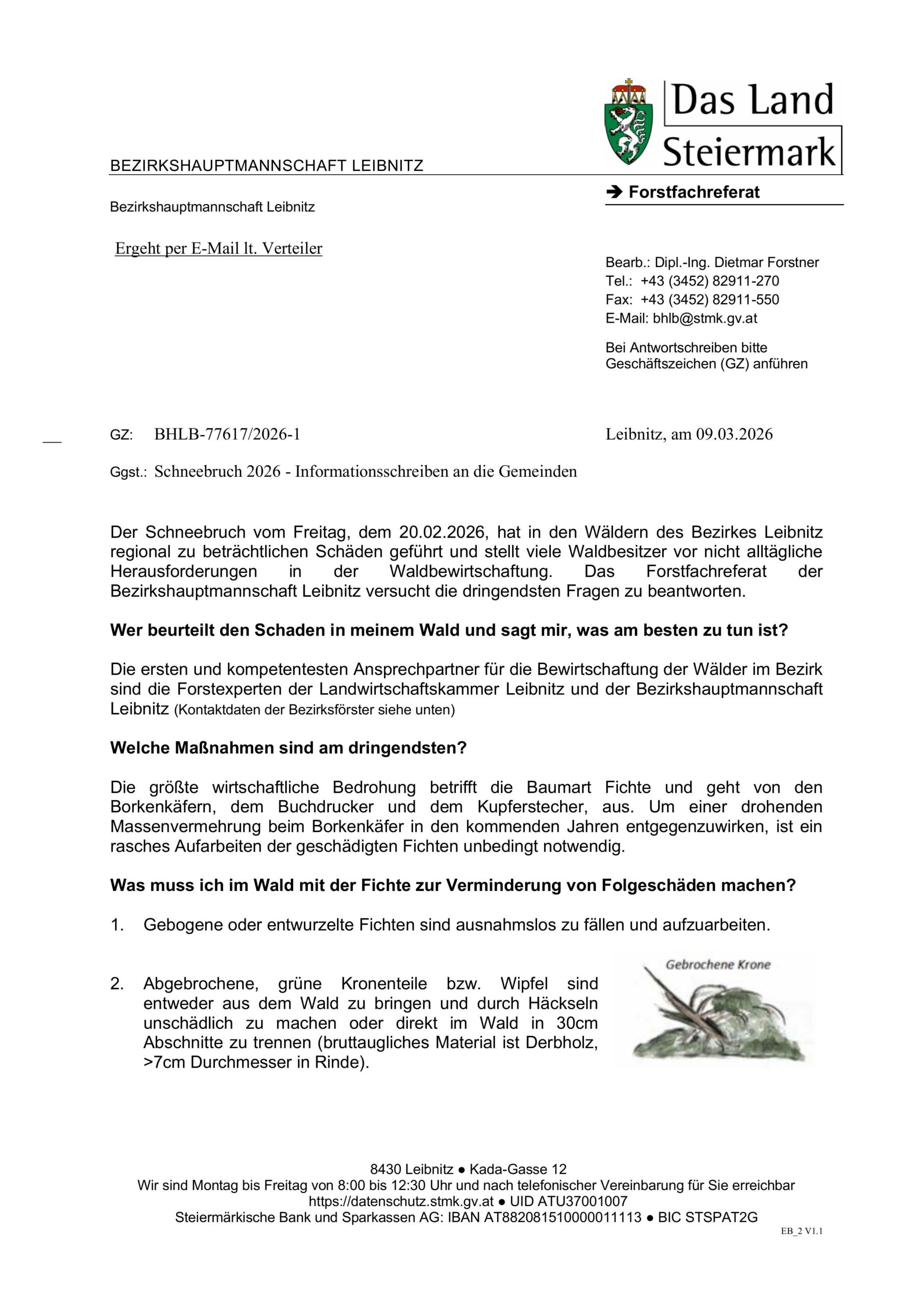 Das Forstfachreferat der Bezirkshauptmannschaft Leibnitz versucht im nachfolgendem Schreiben die dringendsten Fragen zu beantworten.